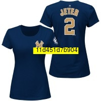 Derek Jeter #2 New York Yankees MLB Women's Gold Name & Number T-Shirt with Retirement Logo
